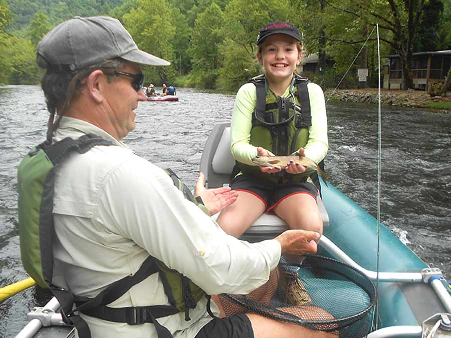 Our premier experience is a fly fishing float trip on the lower Nantahala River. Whether you are interested in trout fishing or smallmouth bass fishing with a fly rod, our professional guides will work with you on the best places to fish, and add to your repertoire of casting with new techniques.